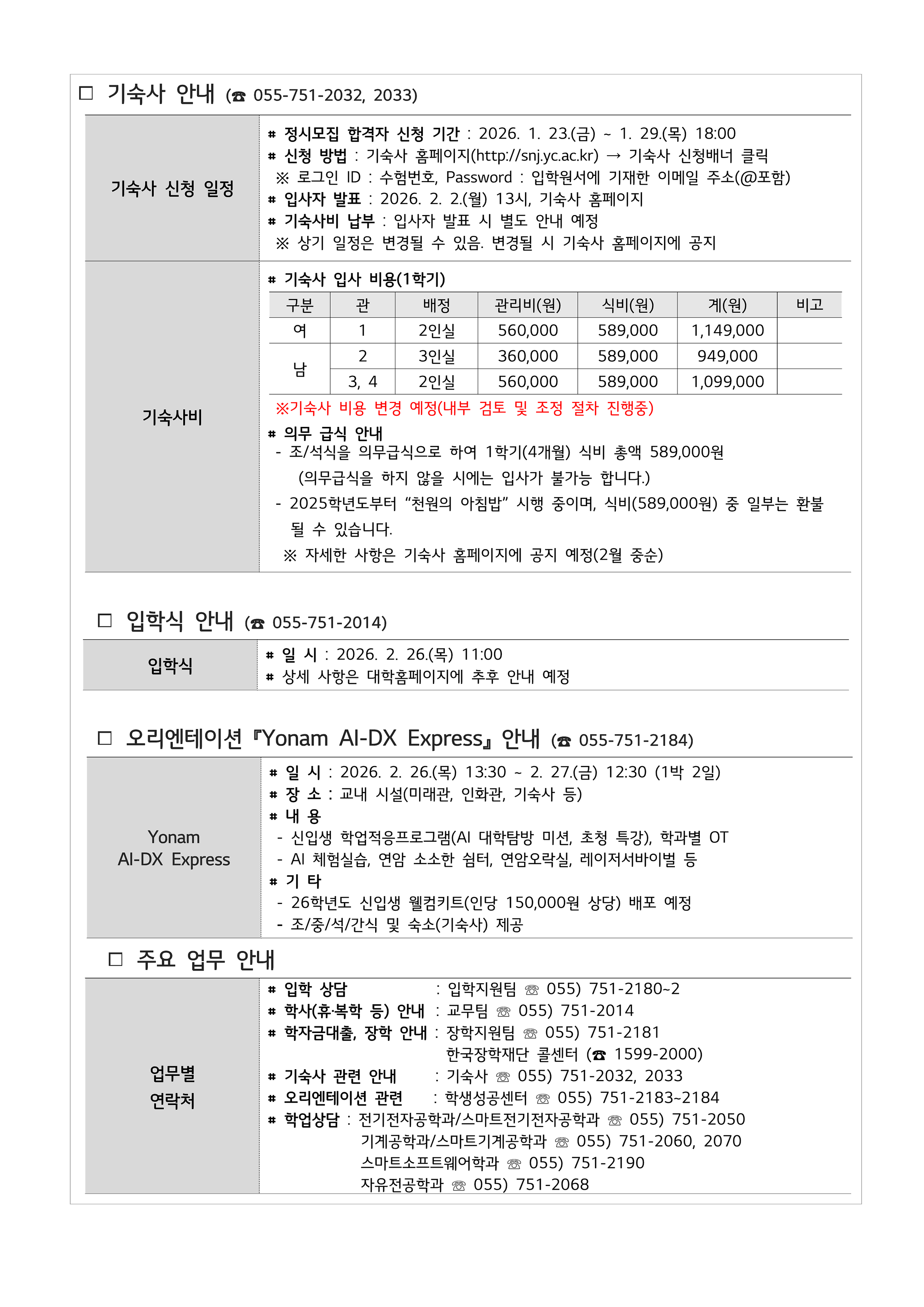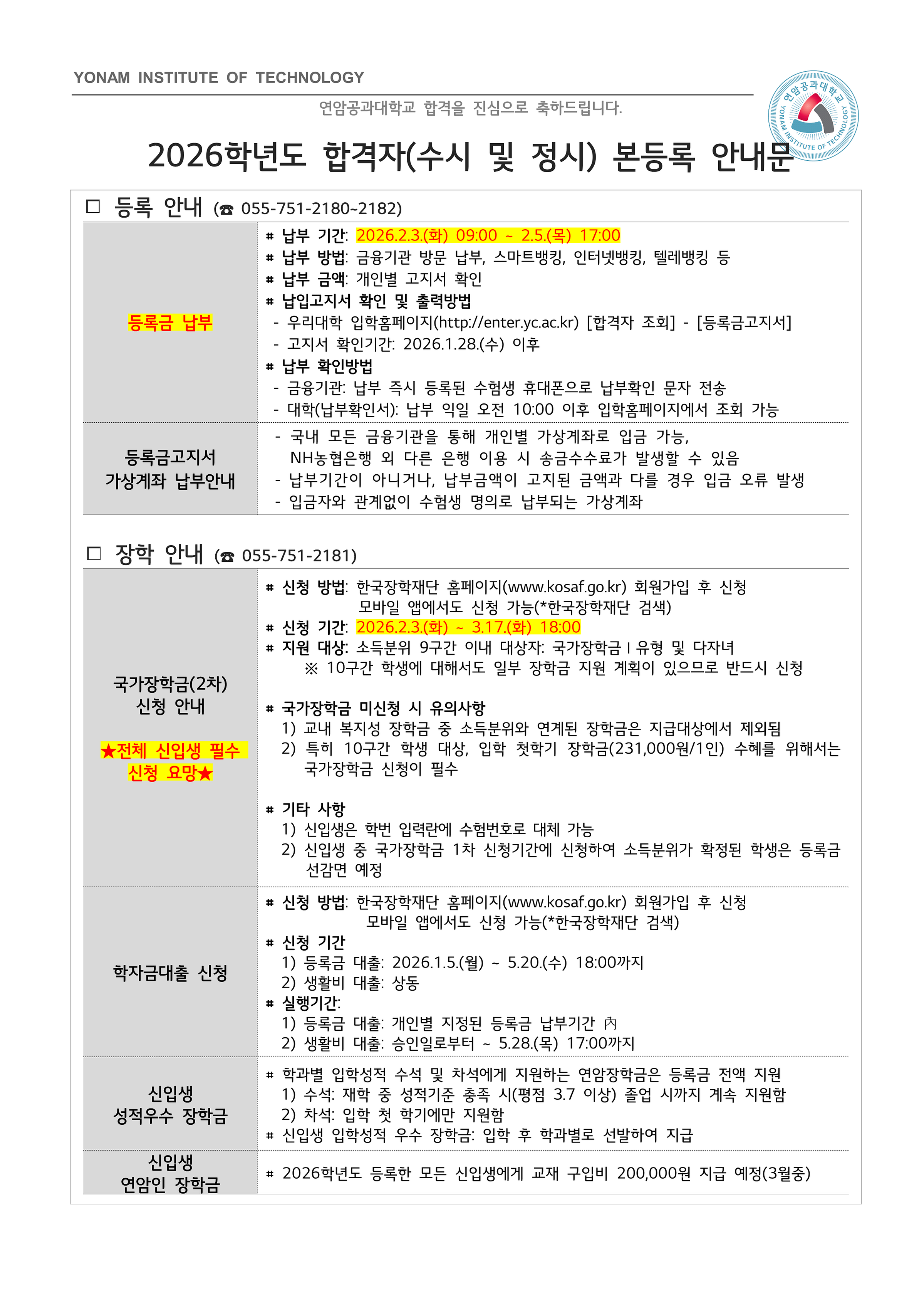 2026학년도 합격자(수시 및 정시) 본등록 안내